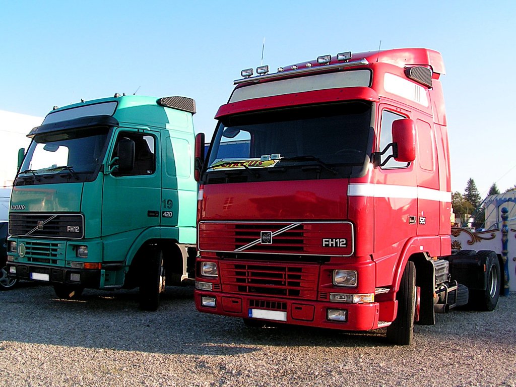 Zwei Volvo FH Sattelzugmaschinen und eine Mercedes Actros Sattelzugmaschine in Vojens am 13.09.2025