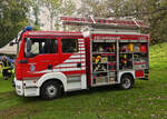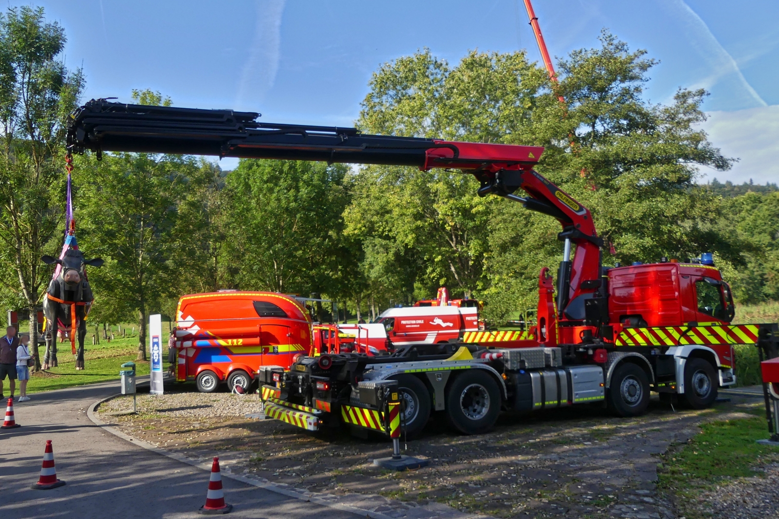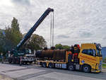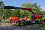 Volvo FM mit Kranaufbau, bei der Übung zu einer Vorführung, am Tag der Rettungsdienste. 22.09.2024