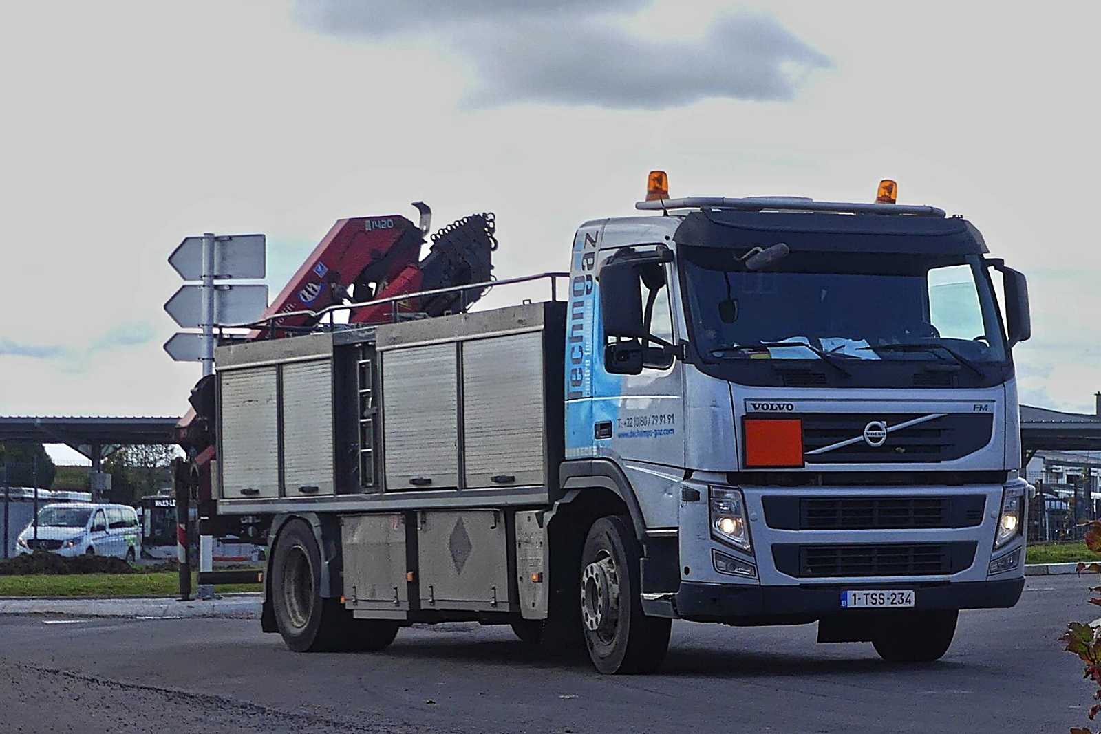 Volvo FM mit Sonderaufbau, fährt in einen Kreisverkehr ein. 10.2024