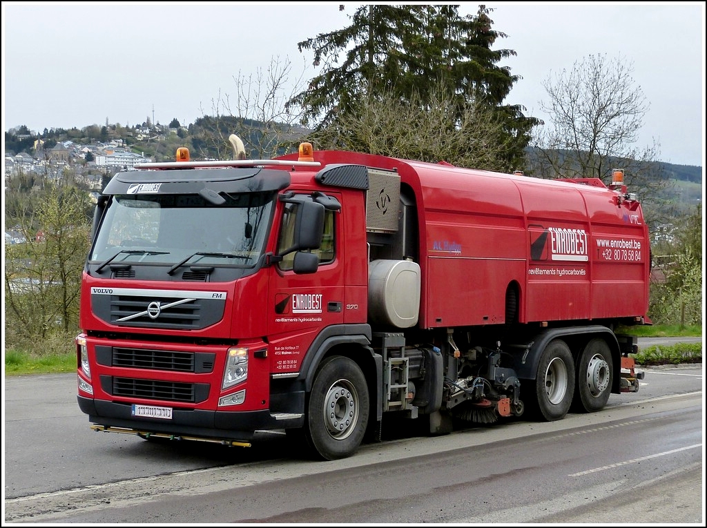 Volvo FM 370 mit Straßenreinigungsaufbau gesehen bei einer Baustelle am 26.04.2012.