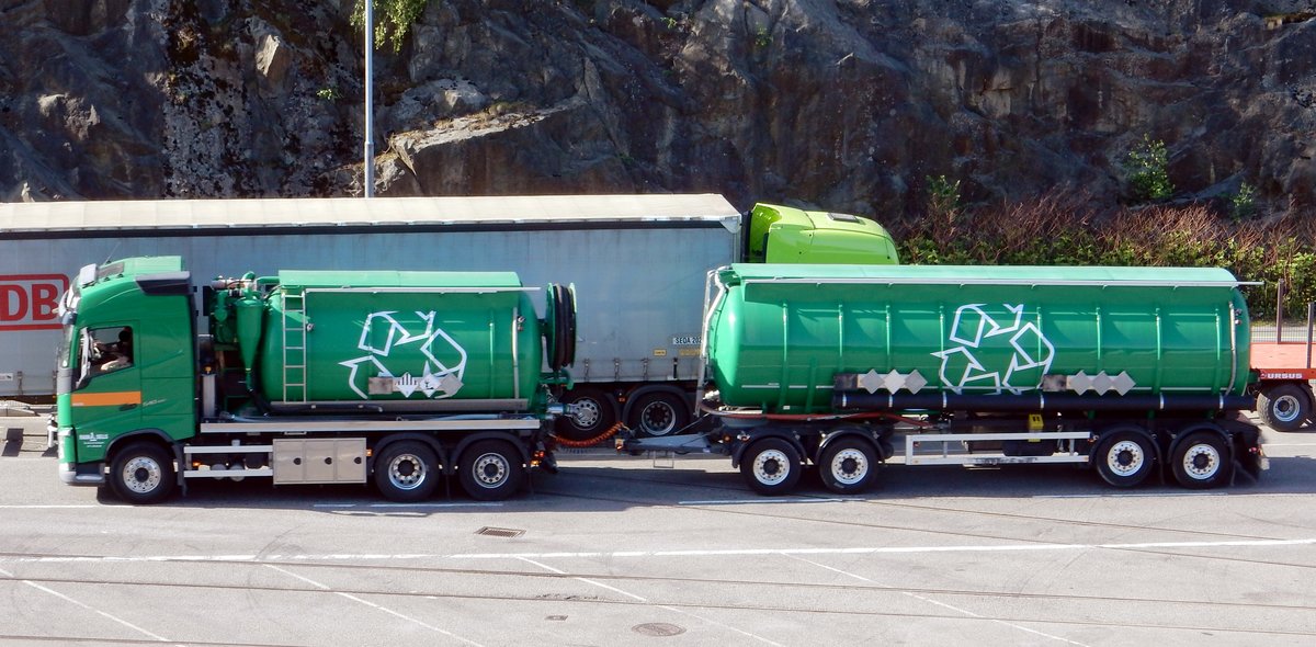 Volvo LKW als Entsorger am 21.05.18 in Stockholm.