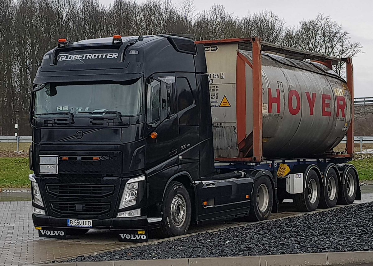 =Volvo 500 steht mit einem HOYER-Tankauflieger auf dem neu gestalteten Rastplatz Fulda Nord, 03-2021