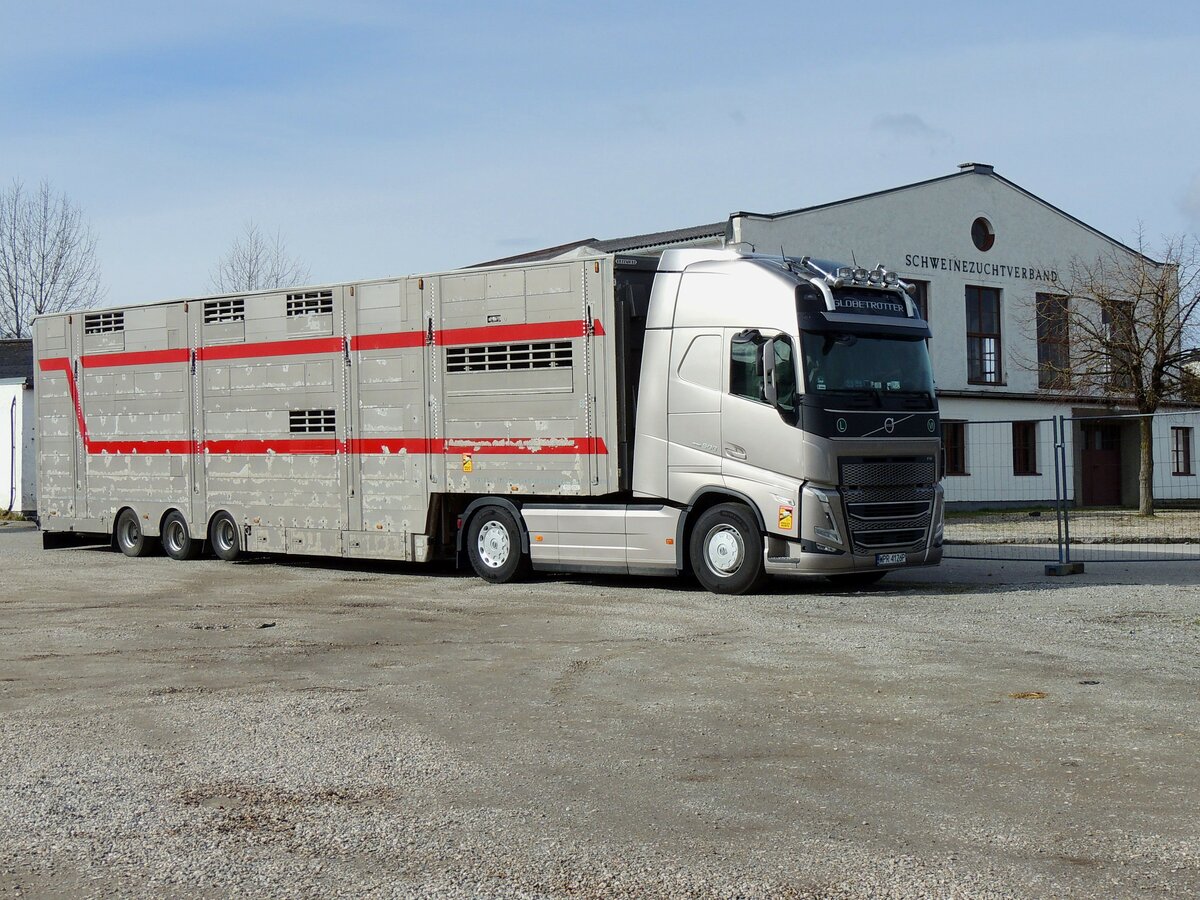 VOLVO FH500 aus Polen, warten vor den FIH-Stallungen in Ried auf die Beladung von Export-Nutzvieh; 220201