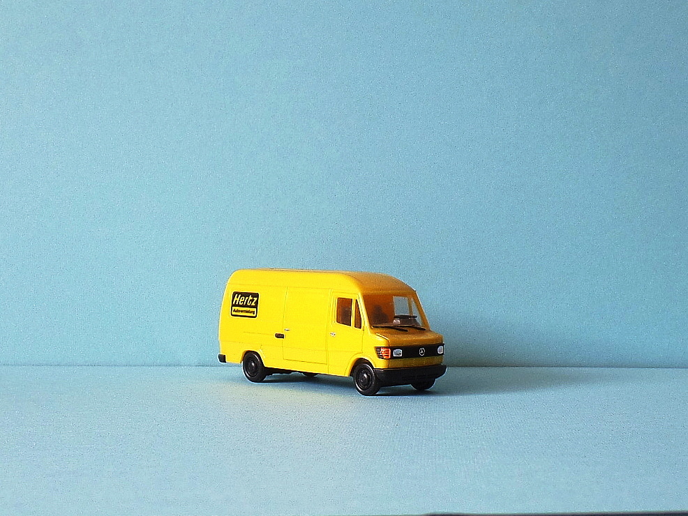 MB 207 D, 1:87, Werbung: Hertz, Hersteller: Herpa 4077, Foto am 8.4.2014