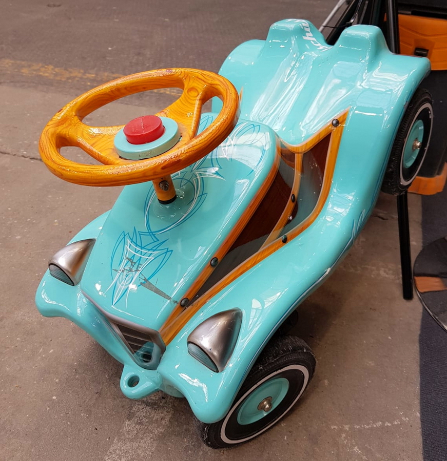 Farblich aufgewertetes Bobby Car. Foto: Berliner Motorrad Tage, BMT, 08.02.2019