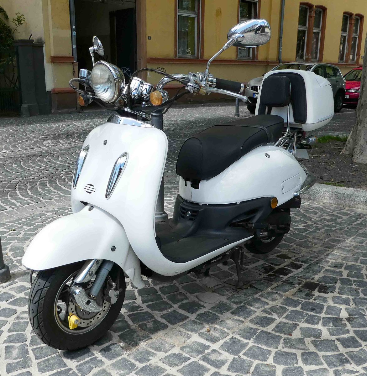 Motorroller im Retrolook steht im Mai 2017 in Wiesbaden