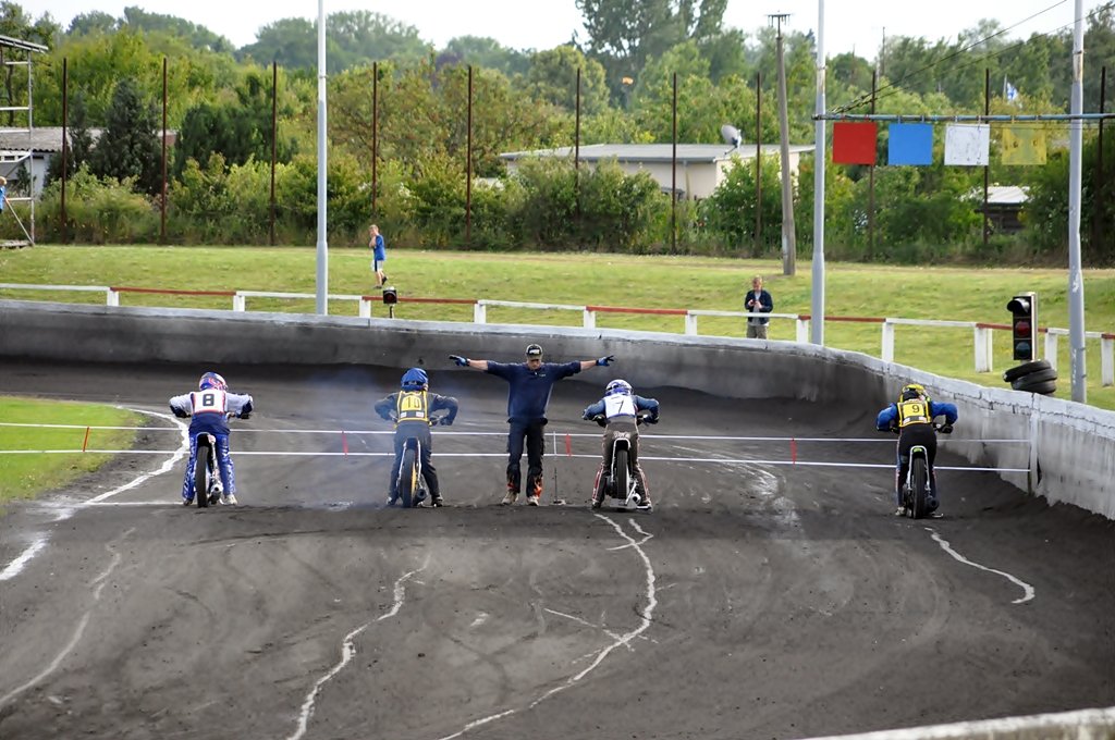 Startprozedere beim Lauf zur LMMV & OBC am 27.06.09 im Stralsunder Speedway-Stadion "Paul-Greifzu" des MC Nordstern aus der Rückansicht