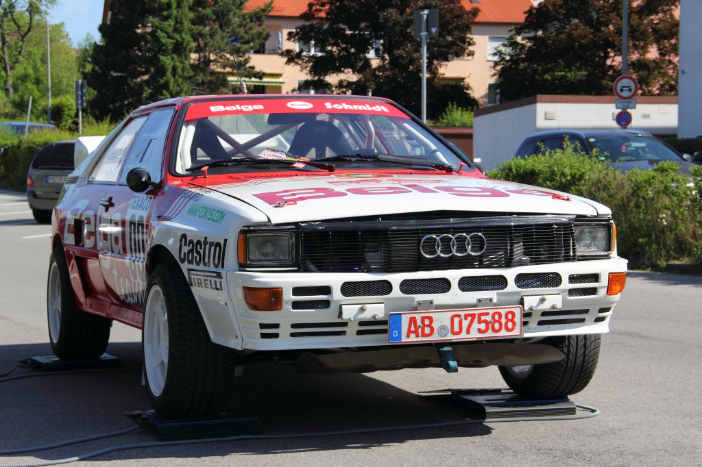 Audi Rally Quattro A2 beim wiegen im Rallyzentrum FTE Rally Ebern 2012. ex Waldegard/ Thorszelius