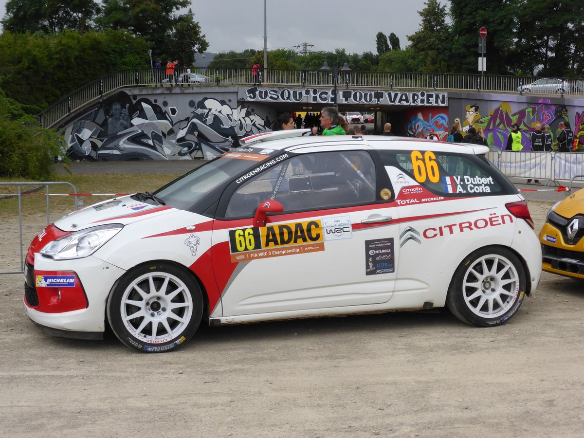 Citroen DS 3 R3T (Vincent Dubert / Alexandre Coria) im Servicepark der Deutschland-Rallye, 21.08.2016