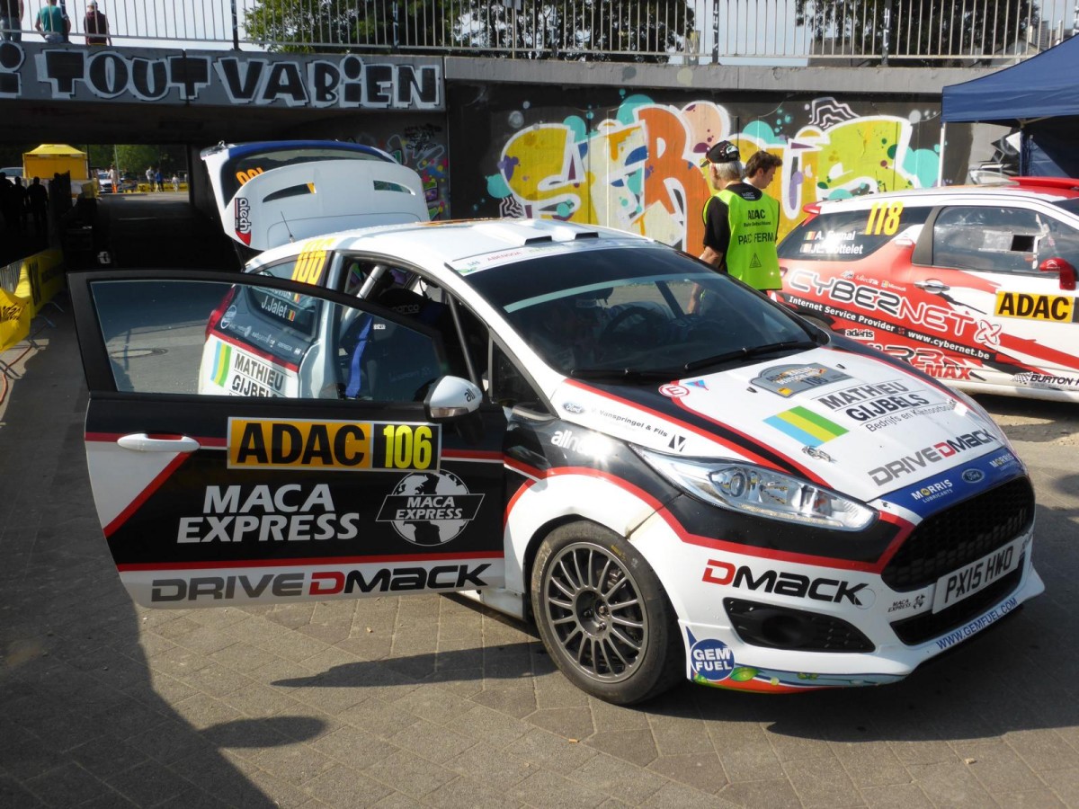 Ford Fiesta R2 (Chislain de Mevius / Johan Jalet) im Servicepark der Deutschland-Rallye, 23.08.2015