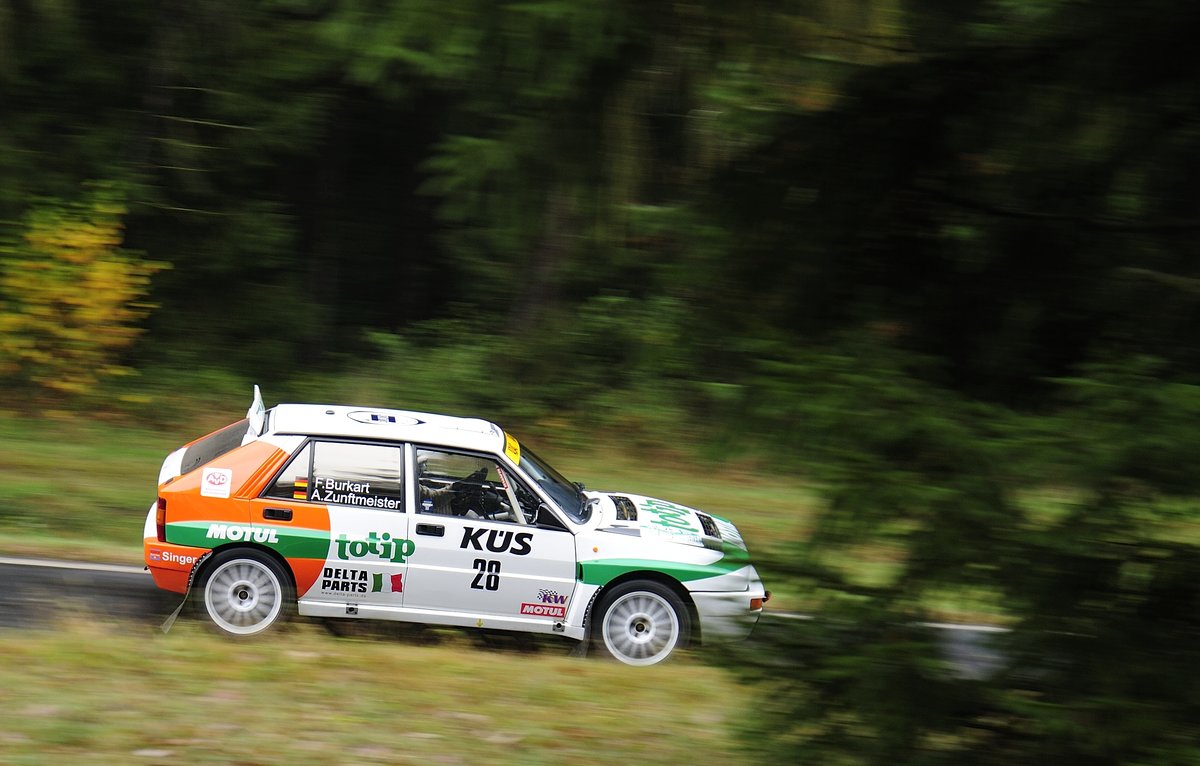 Mitzieher vom Lancia Delta Integrale Nr.28 Frank Burkart & Armin Zunftmeister bei der "Youngtimer" 39. ADAC Rallye Köln Ahrweiler 12.11.2016, Morgens -2° auf teils noch glaten Asphalt
