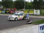 Mitsubishi Lancer driftet auf dem Prologue des 46-ten Mecsek Rallye (2012)