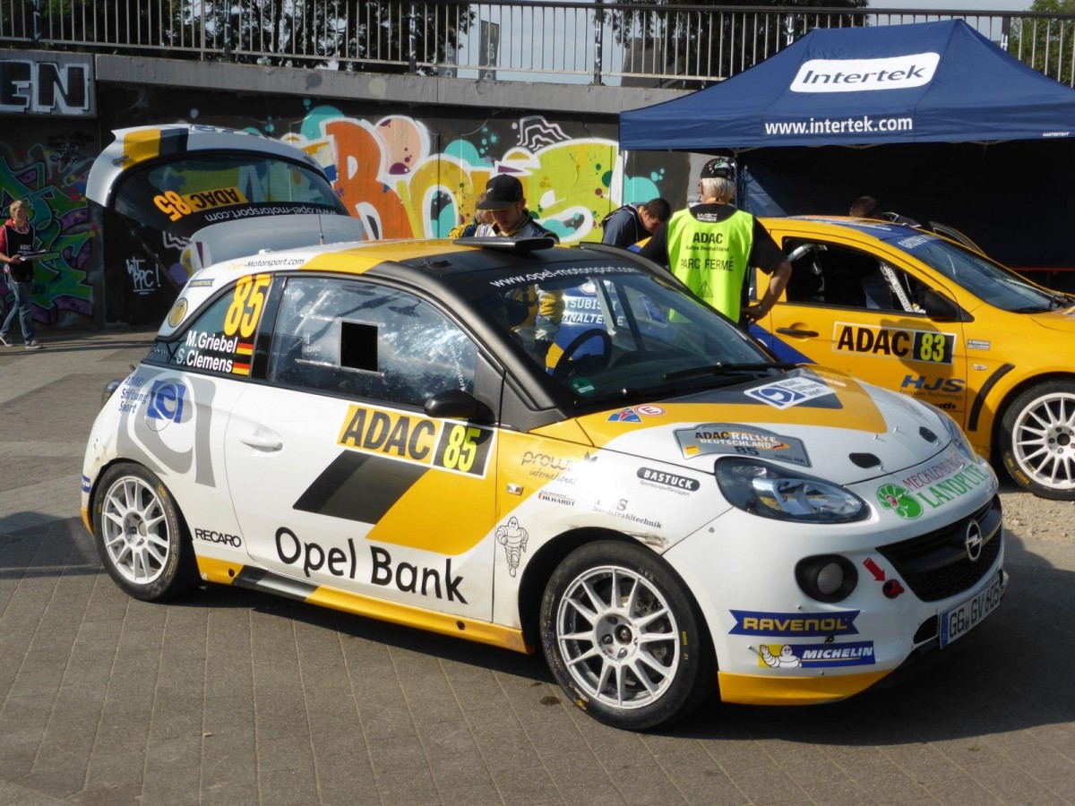 Opel Adam R2 (Marijan Griebel / Stefan Clemens) im Servicepark der Deutschland-Rallye, 23.08.2015