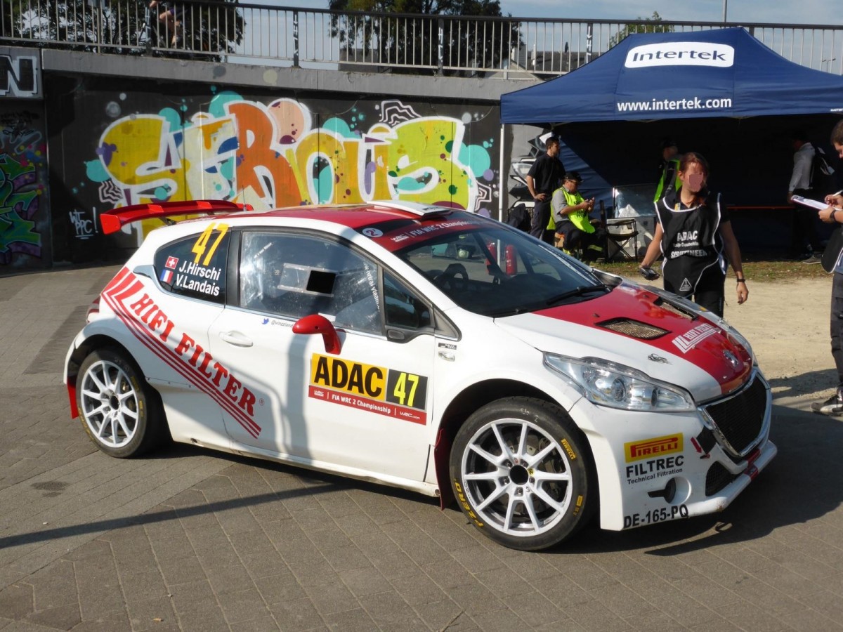 Peugeot 208 T16 (Jonathan Hirschi / Vincent Landais) im Servicepark der Deutschland-Rallye, 23.08.2015