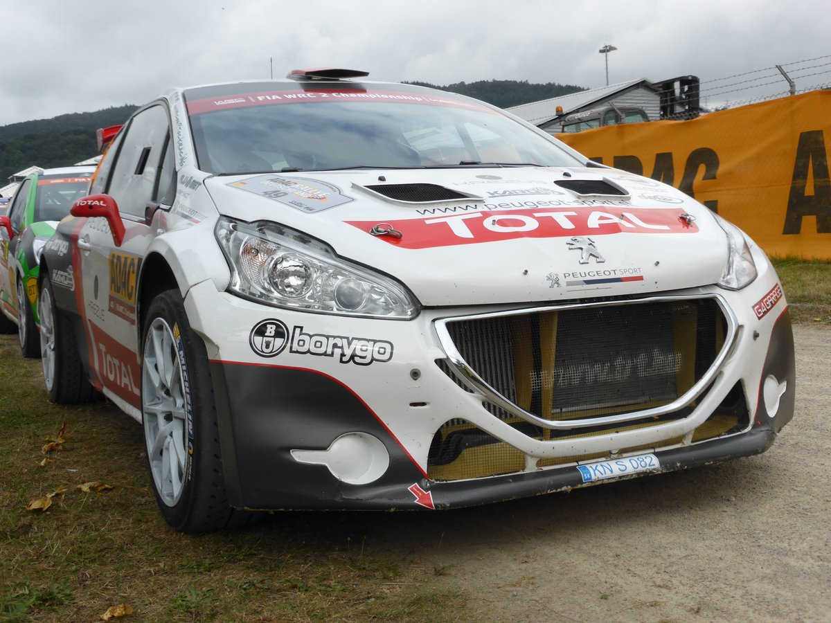 Peugeot 208 T16 R5 (Maciek Szczepaniak / Hubert Ptaszek) im Servicepark der Deutschland-Rallye, 21.08.2016