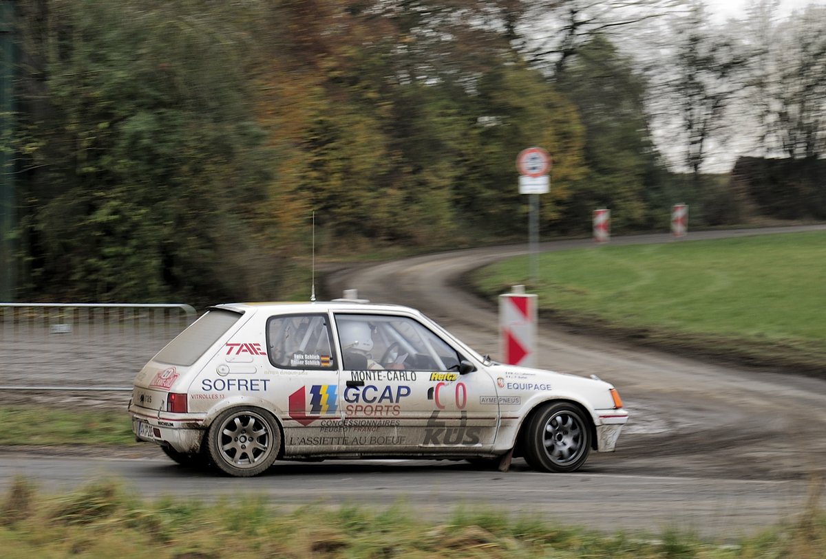 C 0, Vorwagen Peugeot 205 GTI, bei der Youngtimer Rallye Köln Ahrweiler 12.11.2016, Nachmittags beim abbigen in einen Wirtschaftsweg nähe Rodder