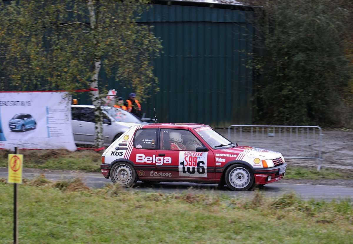S 99, Vorwagen Peugeot 205 GTI, bei der Youngtimer Rallye Köln Ahrweiler 12.11.2016, Nachmittags beim abbigen in einen Wirtschaftsweg nähe Rodder