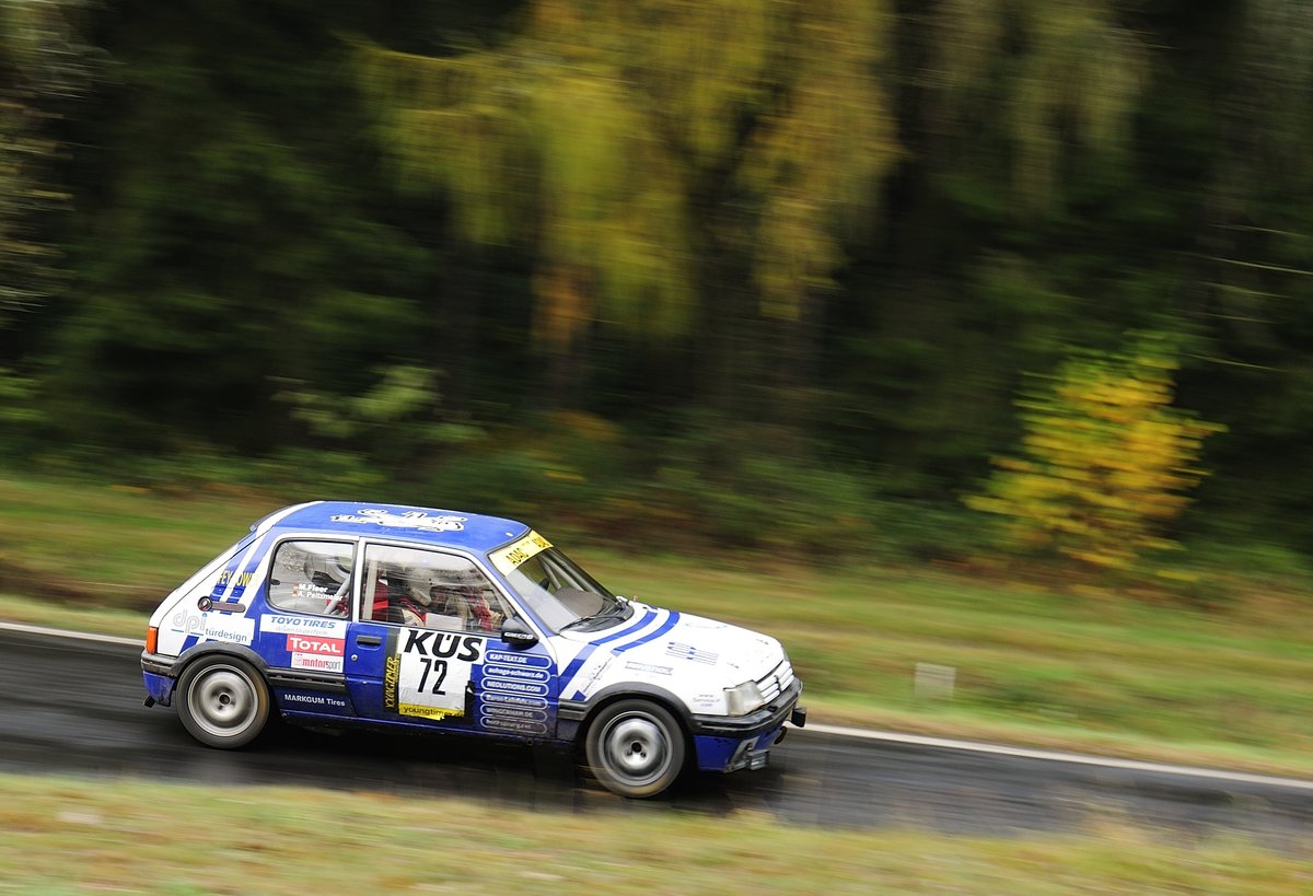 Achim Peitzmeier & Manfred Fleer Peugeot 205 GTI mit der Startnummer 72 bei der "Youngtimer" 39. ADAC Rallye Köln Ahrweiler 12.11.2016, Morgens -2° auf teils noch glaten Asphalt