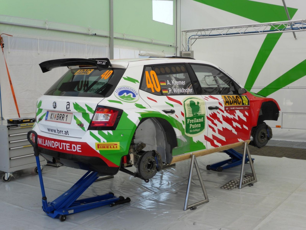 Skoda Fabia R5 (Kremer / Winklhofer) im Servicepark der Deutschland-Rallye, 23.08.2015