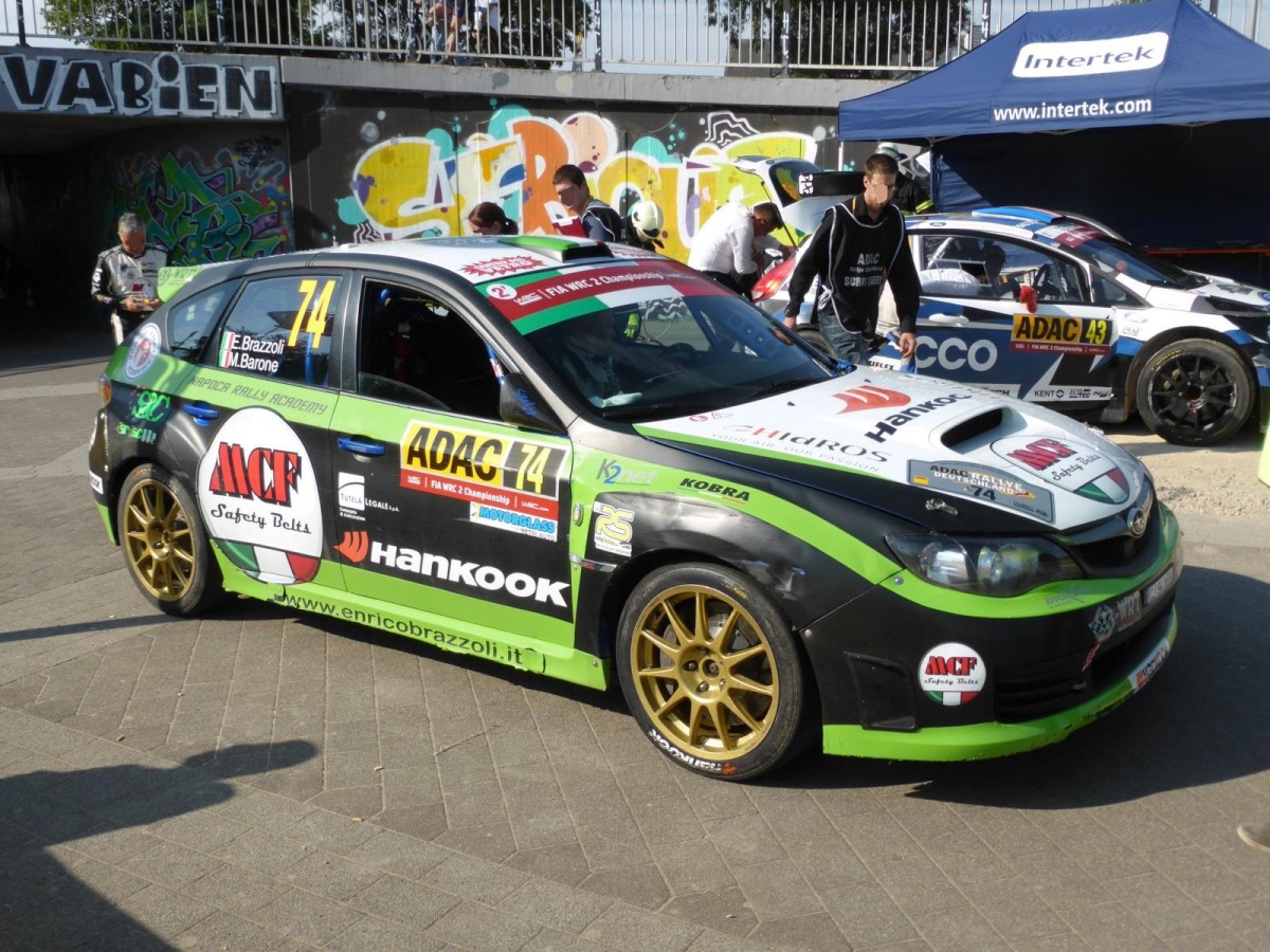 Subaru Impreza WRX STi (Enrico Brazzoli / Maurizio Barone) im Servicepark der Deutschland-Rallye, 23.08.2015