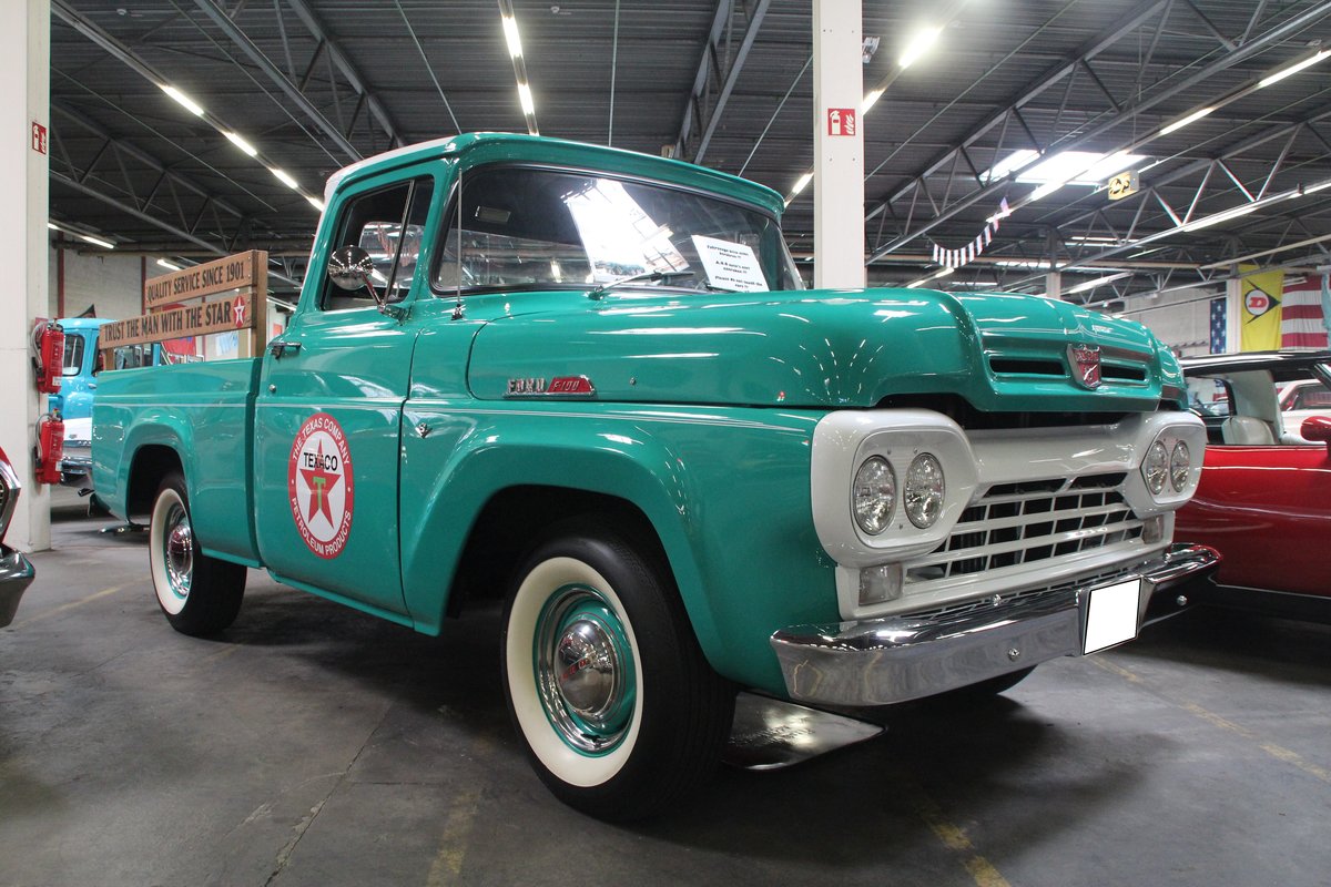 Ford F 100 Pickup des Modelljahres 1960. Der abgelichtete F 100 ist im Farbton caribbean turquoise lackiert. Der V8-motor hat einen Hubraum von 5l und leistet 139 PS. Emmerich am 26.07.2017.