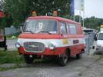 DDR-Oldie Barkas 1000 - aufgrund der Lackierung und der blauen Rundumleuchte - vermutlich immer noch als Feuerwehrfahrzeug tätig; in der DDR wurden diese Fahrzeuge als Kleinlöschfahrzeuge eingesetzt (gesehen in Flensburg, 02.09.2023)