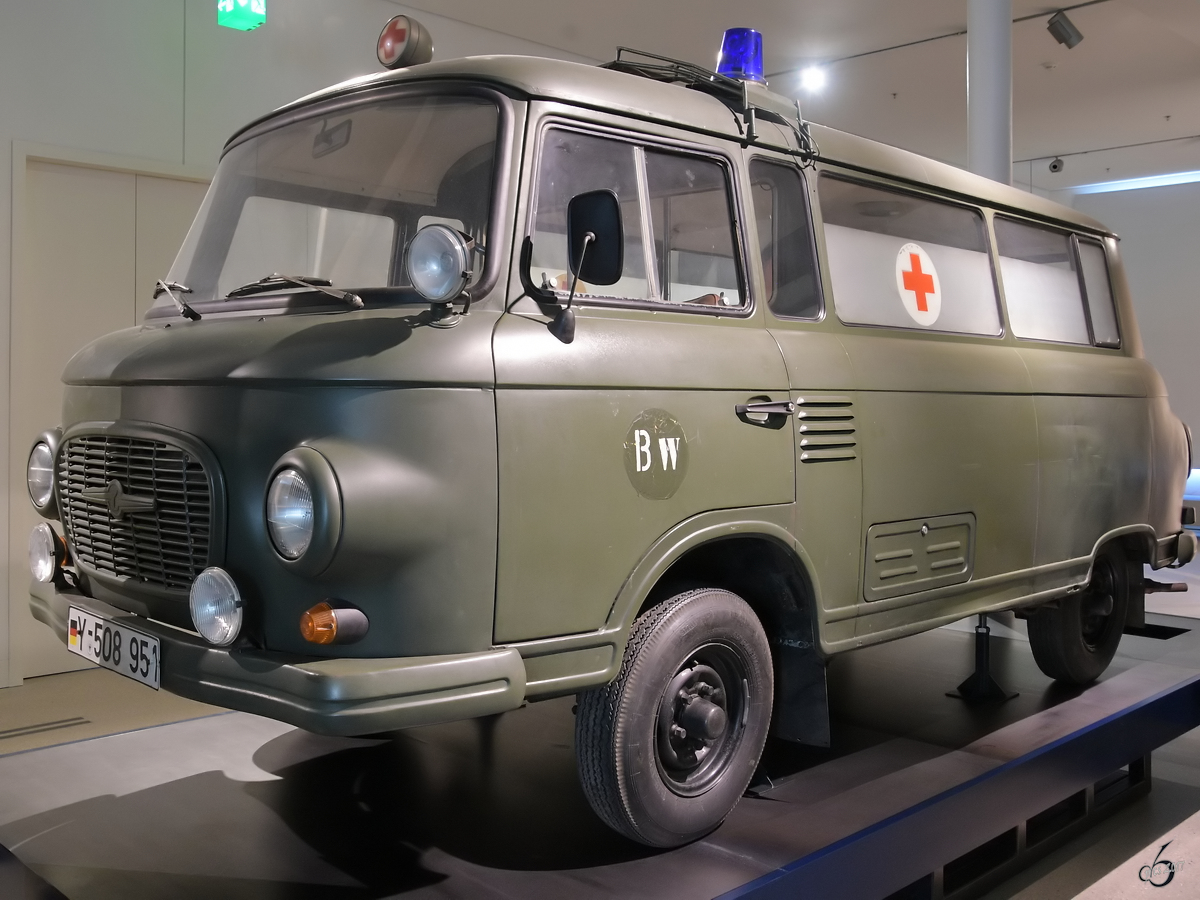 Ein Sanitätsfahrzeug Barkas B1000 der Bundeswehr im Militärhistorischen Museum Dresden. (April 2017)
