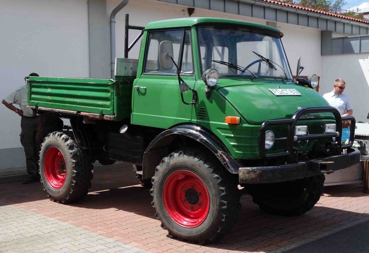 Unimog, gesehen bei der Oldtimerausstellung der "Alten Zylinder" Hilders im Juni 2015