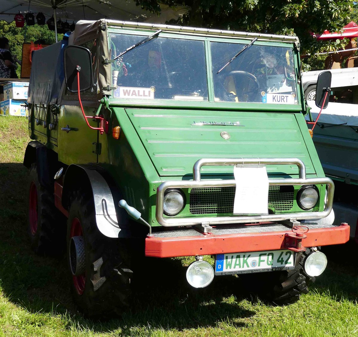 =Unimog, steht auf dem Ausstellungsgelände zum Pferdsdorfer Oldtimertag im August 2016