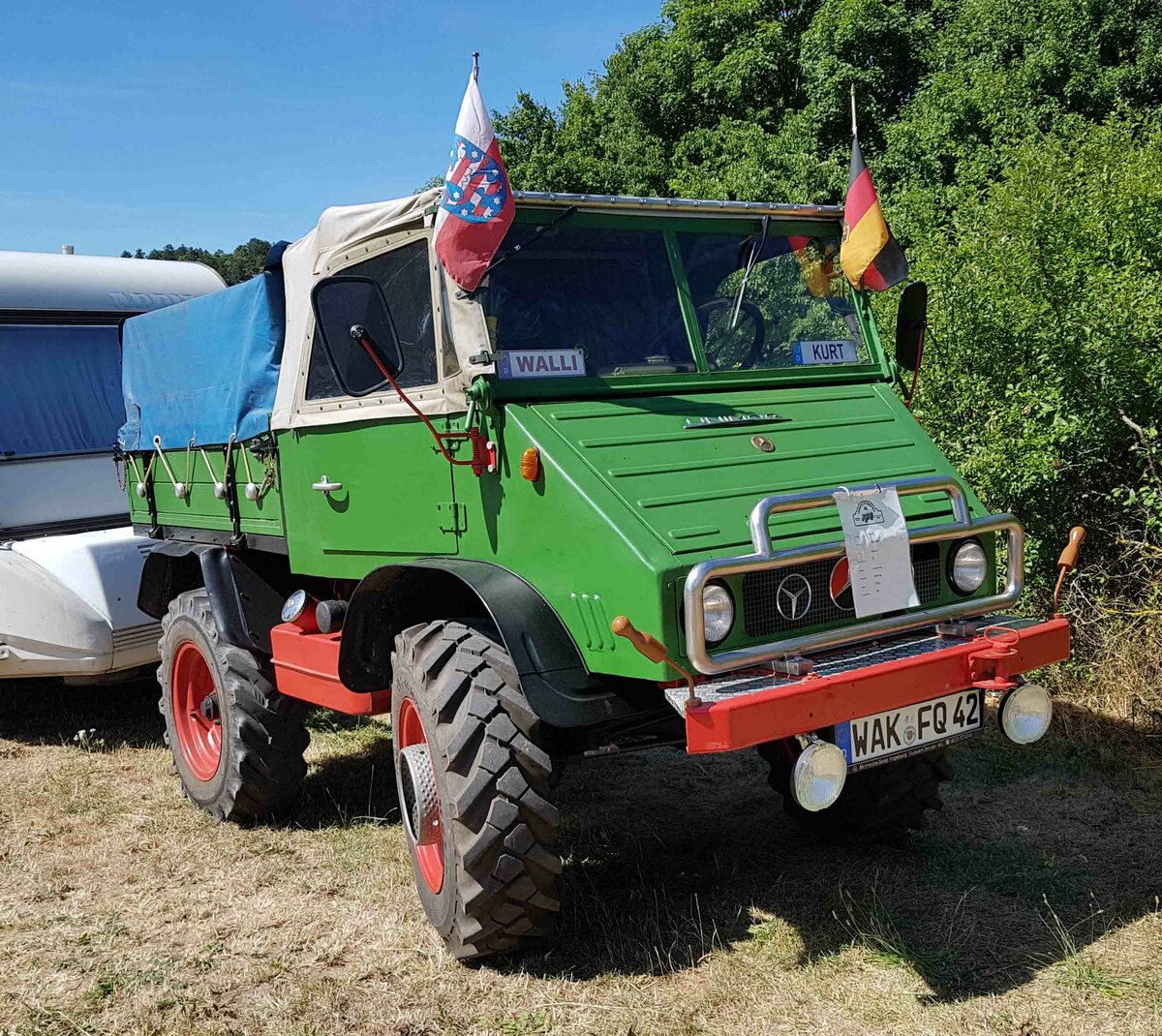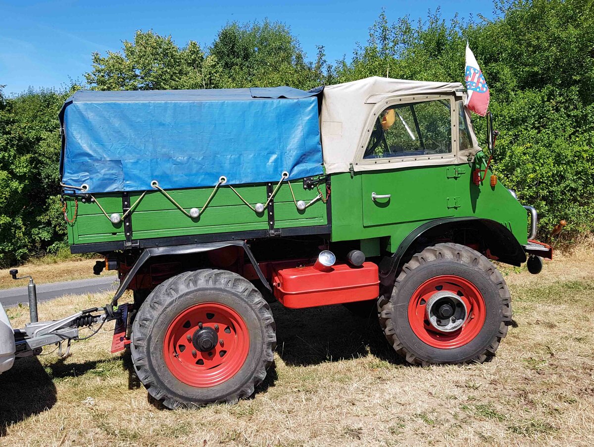 =Unimog U 40, ausgestellt bei der Traktorenaustellung der Fendt-Freunde Bad Bocklet im Juni 2019