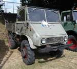 =Unimog U 411, Bj. 1985, 35 PS, präsentiert auf dem Ausstellungsgelände in Gudensberg im Juni 2019