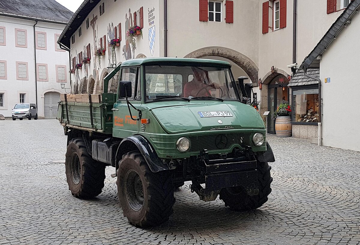 =Unimog der Firma EDER rollt im Juni 2022 über den Schloßplatz in Berchtesgaden