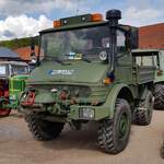 =Unimog, präsentiert bei der Oldtimerausstellung der Traktorfreunde Wiershausen am Klostergut Hilwartshausen, 05-2023