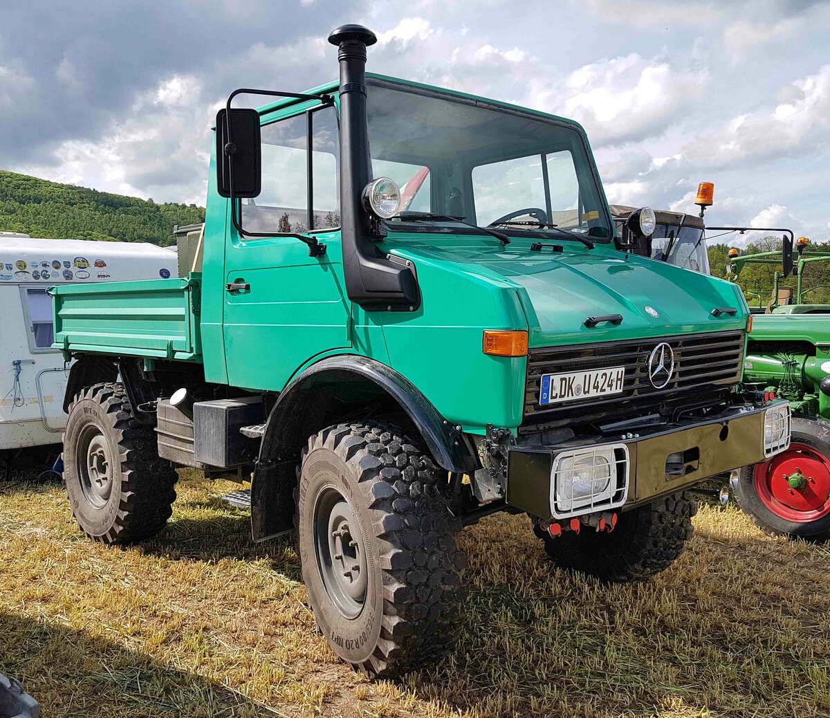 =Unimog, gesehen bei der Oldtimerausstellung der Traktorfreunde Wiershausen am Klostergut Hilwartshausen, 05-2023