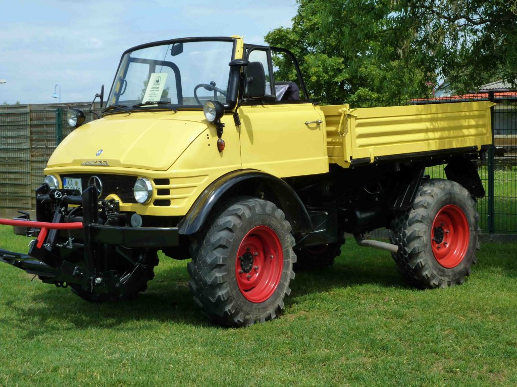Unimog 406 steht auf dem Ausstellungsgelände beim Sommerfest in Karlsdorf-Neuthart im Juni 2013
