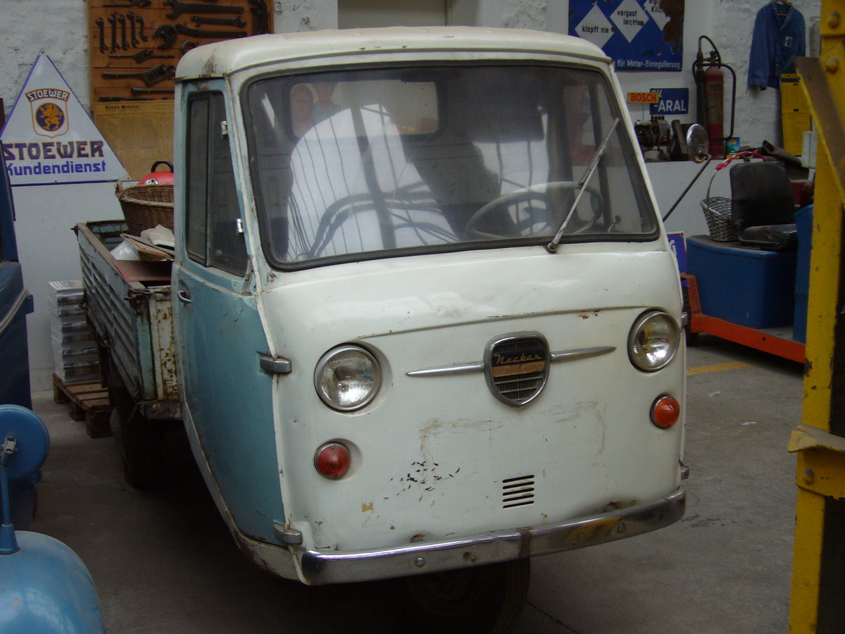 Lastendreirad Neckar Pully. Das Lastendreirad wurde bei Fiat/Weinsberg konstruiert. Viele technische Komponenten stammten vom Fiat 500. Nutzfahrzeugmuseum Halle 31 in Willich am 19.12.2017.