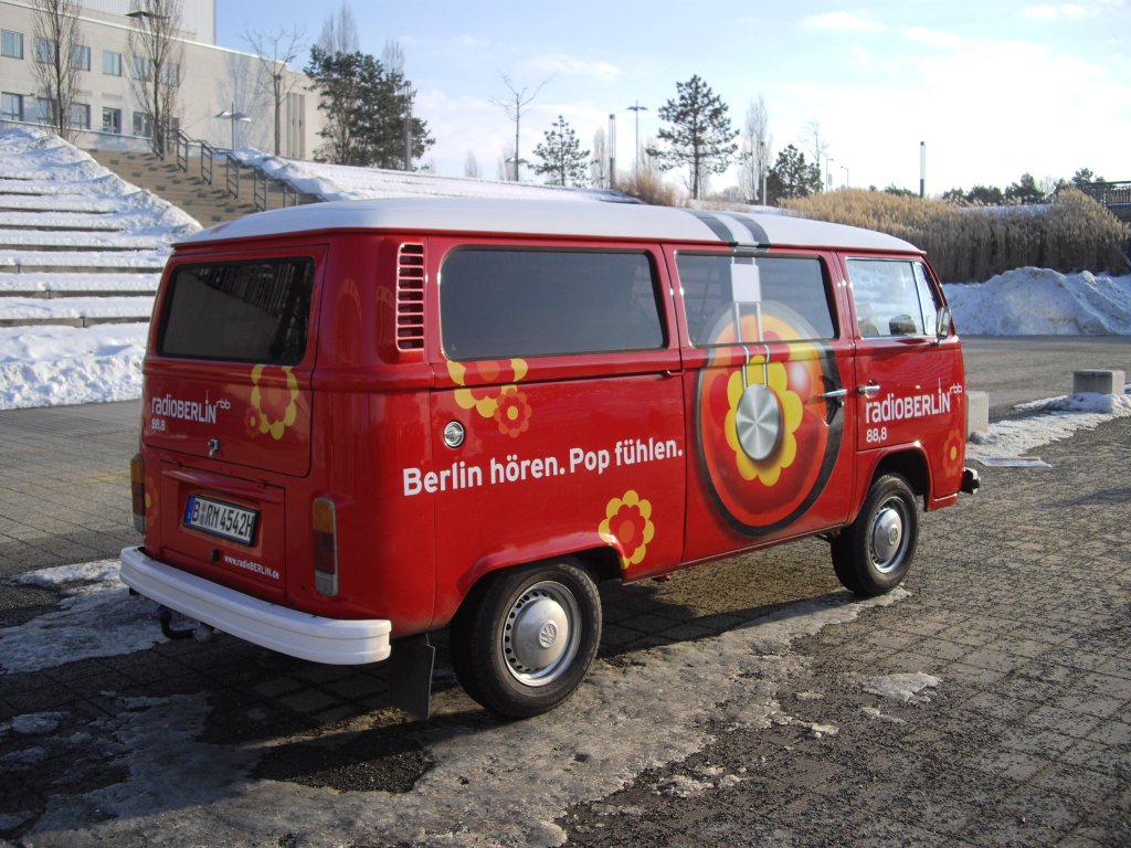 VW Transpoter T2, Heckansicht, als Werbemobil eines Berliner Radiosender´s, gesehen in Berlin, 02/2010.