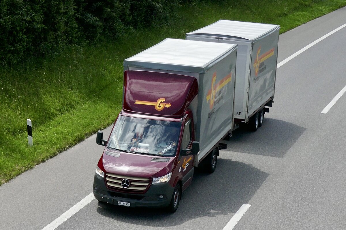 Ein Sprinter Lieferwagen von Galliker der am 28.6.24 auf der A8 in Matten b. Interlaken unterwegs ist.