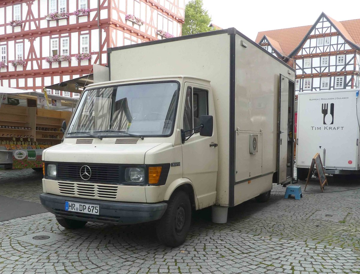 =MB T1 eines Markthändlers steht auf dem Marktplatz in Melsungen, 10-2020