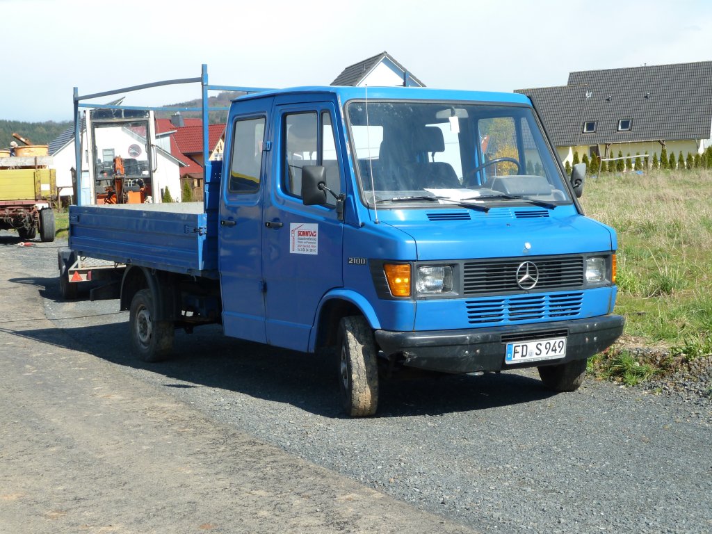 MB T1 der Baufirma "SONNTAG", als Doppelkabiner mit kurzer Ladefläche, steht auf einer Baustelle in 36100 Petersberg-Marbach, April 2012