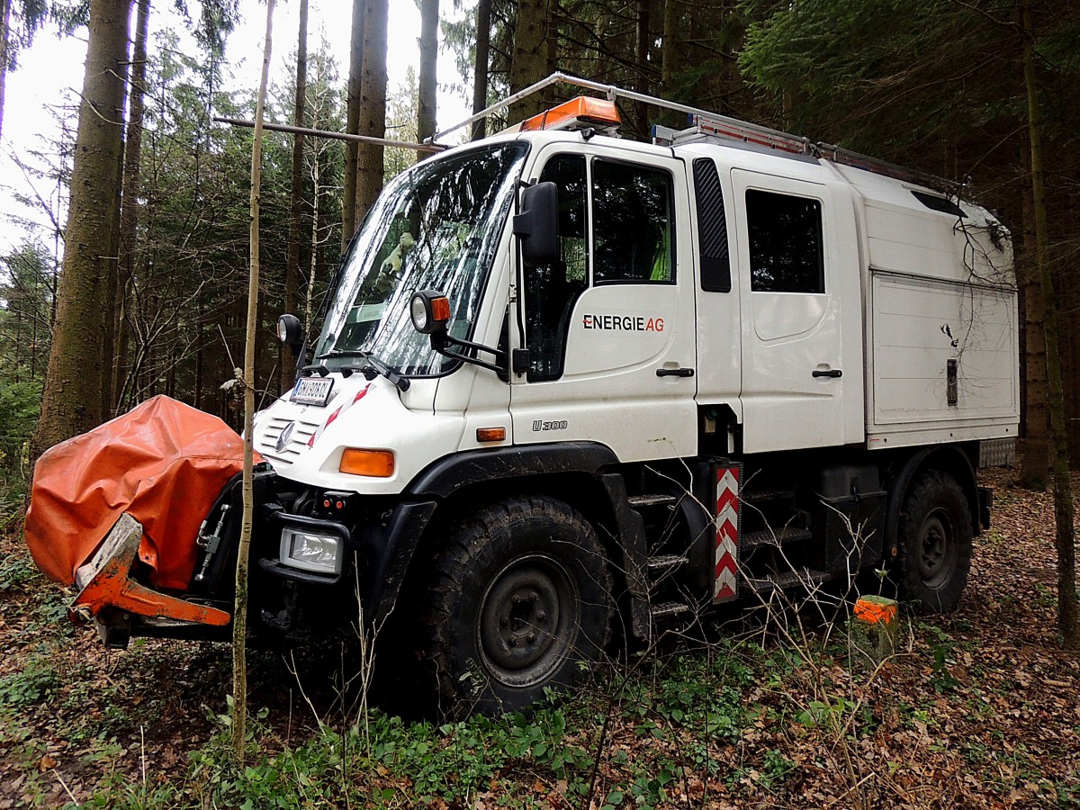 UNIMOG U300 der EnergieAG im unwegsamen Waldgebiet; 141211