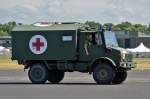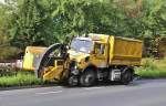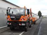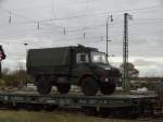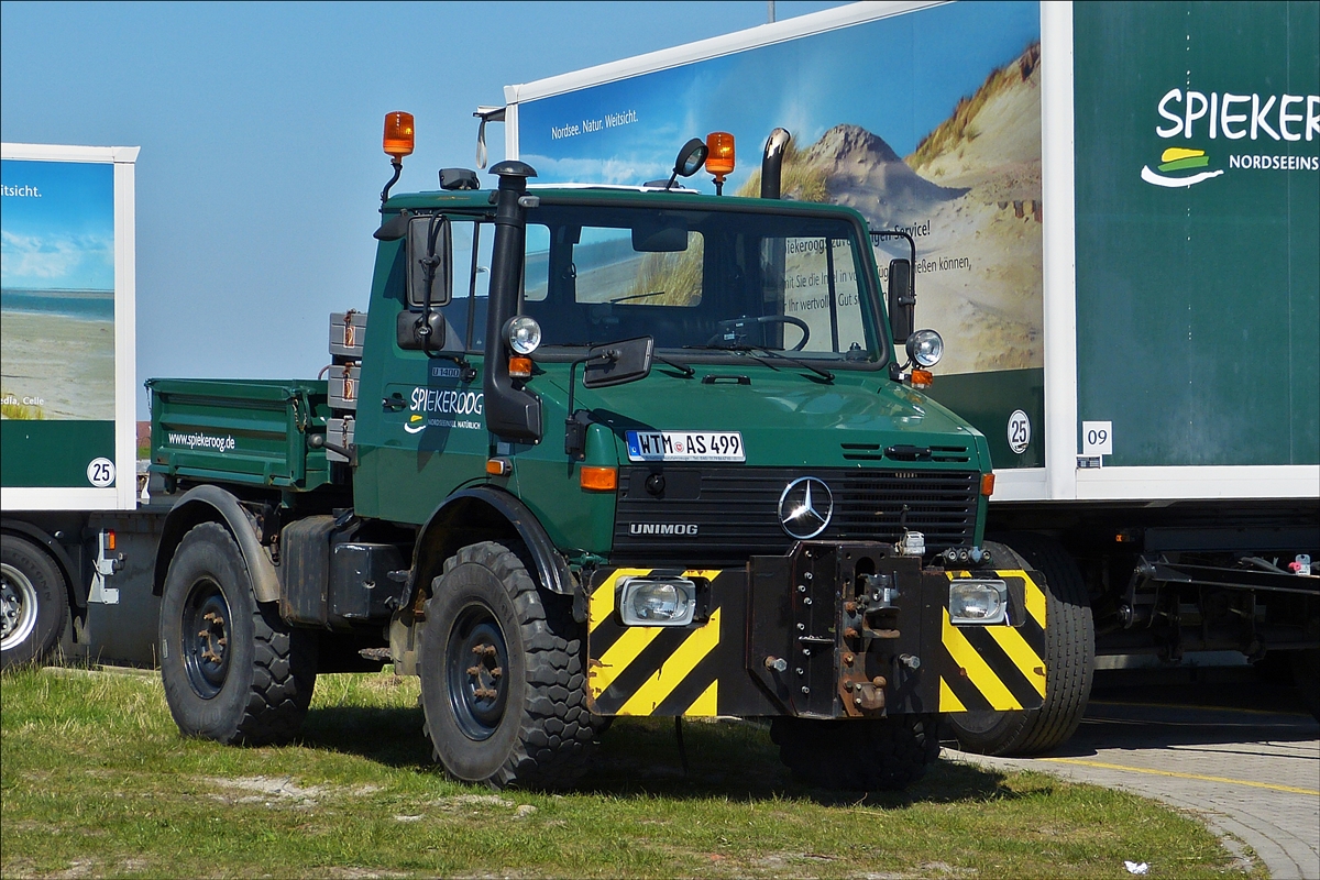 . Auf der Insel Spiekeroog, wartet dieser unimog auf die nàchste Versorgungsfähre um die mit Waren gefülten hänger an Land zu ziehen und die leeren Hànger wieder auf die Fähre zu schieben. 07.05.2016