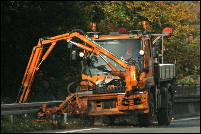 U500 der AM Lüdenscheid bei Mäharbeiten auf der A45 zwischen Hagen und Lüdenscheid. (13.10.2008)