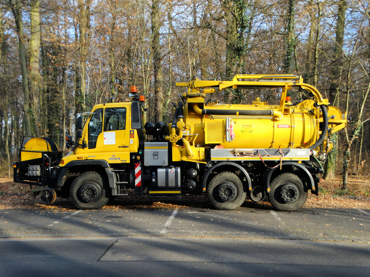 Völker Bauunternehmen Mercedes Benz Zweiwege Unimog U400 mit Tank für Abwasser am 10.12.16 in Hanau Wilhemsbad