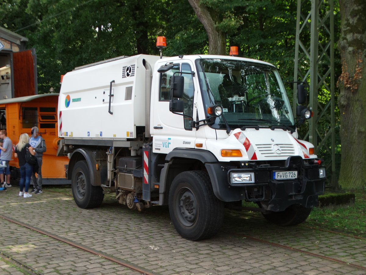 VGF Mercedes Benz Unimog U500 Kehrmaschine am Tag der Offenen Tür im Straßenbahn Museum in Frankfurt Schwanheim am 20.08.17