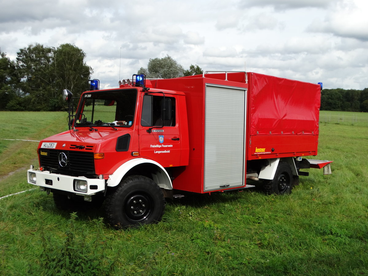 Feuerwehr Langenselbold Mercedes Benz Unimog U1550 SW2000 (Florian Langenselbold 1-62-1) am 09.09.17 bei einer Jugendfeuerwehr Großübung in Maintal Wachenbuchen