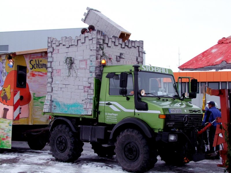 Unimog1600 aus dem benachbarten Bayern wird für den Faschingumzug in Ried i.I. aufgerüstet; 090215
