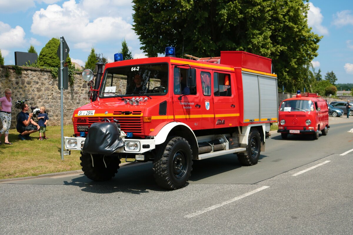 Mercedes Benz Unimog am 04.07.21 bei einer Oldtimer Parade zum Jubiläum 75 Jahre Kreisfeuerwehrverband Gießen in Lich (Hessen)