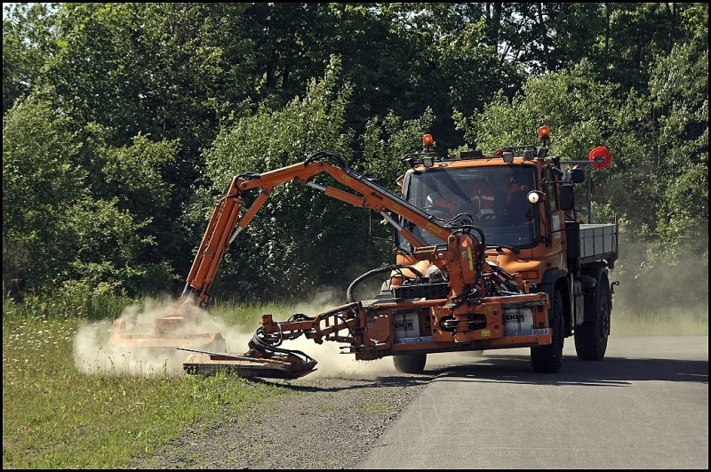 Staubige Sache... U500 mäht die Wiesen um die Salzhalle in Drolshagen.