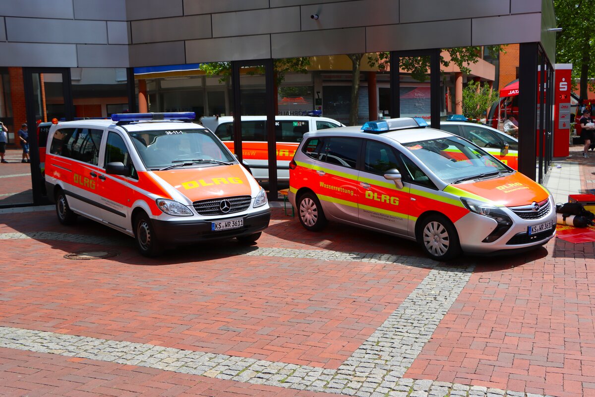 DLRG Maintal Mercedes Benz Unimog U1300 (Pelikan Main Kinzig 19-69-1) mit Boot am 01.10.23 beim Tag der offenen Tür